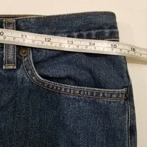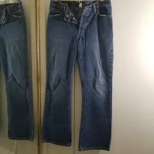 Abercrombie and Fitch blue jeans, size 4R. 5-pocket, 100% cotton, boot cut. No noticeable stain or rip. Used, but good conditions. Measurements are estimates only.
