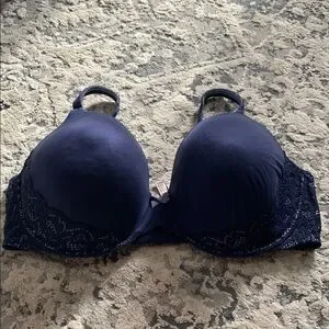 Discover the allure of this Victoria's Secret bra, featuring a deep blue hue and delicate lace trim. The molded cups offer a smooth, rounded shape, while the plunge style adds a touch of elegance. Crafted for comfort and style, this bra is a perfect addition to your intimate collection.
