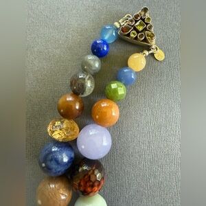 NWT Multicolor Gemstone Statement Necklace and Earring Set Sterling Silver Gift