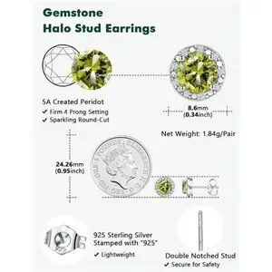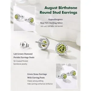 Peridot Earrings Round Cut Women | 925 Sterling Silver | August Birthstone