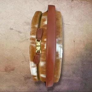DKNY KOREA SAMPLE Brown & White Plush Hide Texture Canteen Crossbody One Off Bag