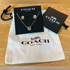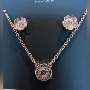 NEW Coach Open Circle Rose Gold Necklace Tea Rose Stud Earrings Set - this is a beautiful, brand new necklace & earrings set . No issues or flaws.