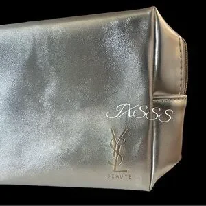 Silver-Gold YSL (Yves Saint Laurent) Beauty Cosmetic-Makeup Bag