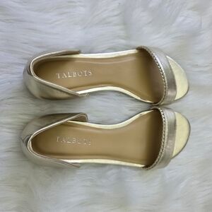 Step out in style with these elegant gold sandals from Talbots. Perfect for any occasion, these shoes offer both comfort and sophistication.