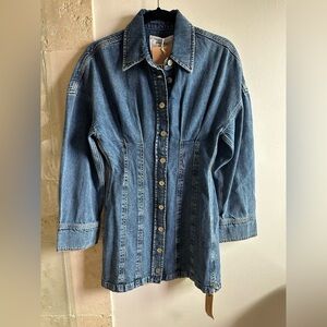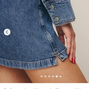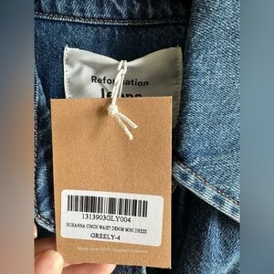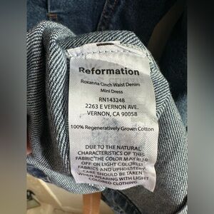 Brand new with tags Roxanna Cinch Waist Mini Dress from Reformation. True to size fit. Collared neckline, non stretch denim fabric. Retails $198.
