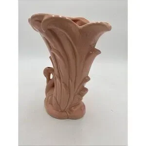 Vintage McCoy Pottery Peach Pink 9 1/4" Tall Swan in Reeds Vase Planter