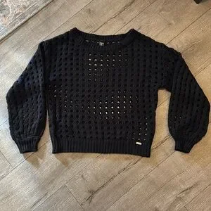 Chic and versatile black sweater with a stylish open-knit design. Perfect for layering and adding a touch of elegance to any outfit.
