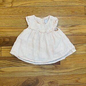 Catherine Malandrino 0-3 month set including light pink shirt with ruffles and subtle heart details, matching ruffle bloomers, and an adorable hat. Adorable for all occassions!