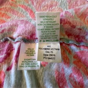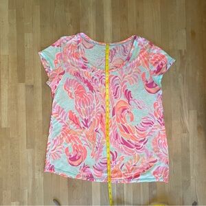 LILLY PULITZER Sarah Top Tee in Love Birds Print Linen Blend Pink Blue Sz Large