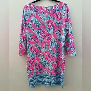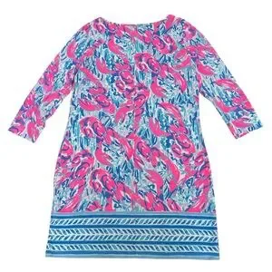 Lilly Pulitzer Blue Pink Lobster Cracked Up Cosmic Coral Marlowe Dress Large