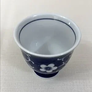 Enjoy your tea in style with this elegant blue floral tea cup. The intricate white floral design adds a touch of sophistication to your kitchen collection.
