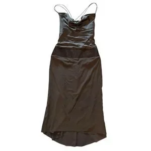 Elegant brown midi dress by Nicole Miller. Features a sleek design with thin straps. Perfect for any occasion.