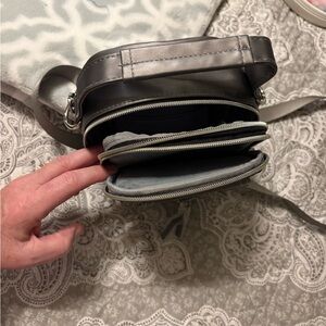 Gray Crossbody Bag with Metal Ring Detail and Adjustable Strap
