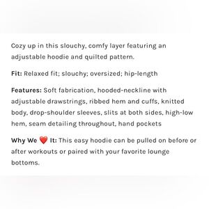 ✨NWT✨FREE PEOPLE SPRINT TO THE FINISH QUILTED HOODIE
