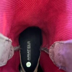 Ariat 4LR Technology burgundy/mauve western boots in suede and snake print; size 7.5; worn once, like new condition; a scuff mark on toe area of right boot (please see pic)