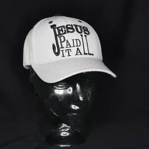 Wear your faith loud and proud. This crisp white unisex cap features bold black embroidery that declares the ultimate truth: Jesus Paid It All. A timeless design with spiritual impact, this cap is perfect for church events, outreach, or everyday inspiration. Adjustable strap for all-day comfort. Excellent condition.