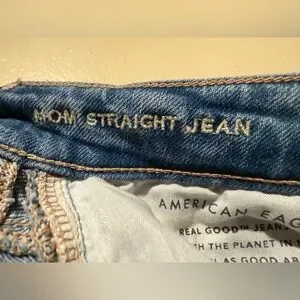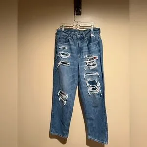 NWT American Eagle Mom Straight Jean Blue Denim plaid patchwork size 8 reg