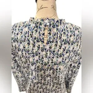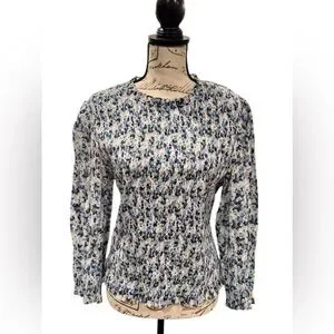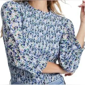 Veronica Beard Kali Smocked Blue and White Floral Blouse Women’s Size 14