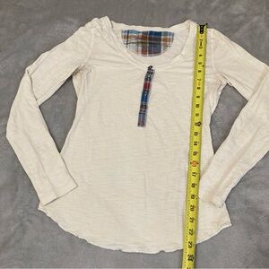 Patagonia White and Tan Long Sleeve Buttoned T-Shirt Organic Cotton Size S