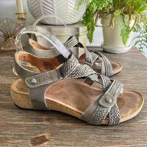 Taos Trulie Lightweight Leather Sandal Woven Leather Women’s 7 - 7.5 Dark Grey
