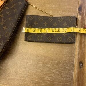 The material on the lining inside the bag has been removed but the cotton lining remains .Pls note that the zippers on the inside of the bag and pouch are a bit stiff due to the sticky material that was cleaned from inside the bag
