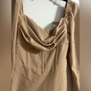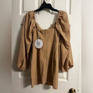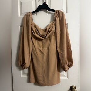 NWT Princess Polly Lillie Long Sleeve Mini Dress Beige