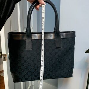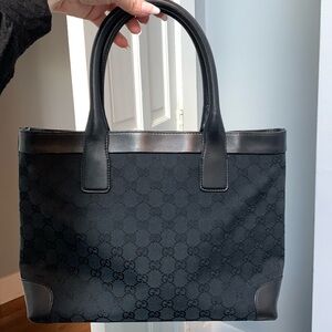 I’m selling my all-black canvas and leather Gucci GG top handle handbag.