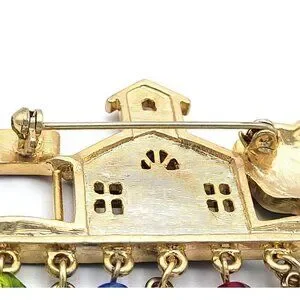 This decorative brooch features a charming schoolhouse design with dangling ABC letters and colorful beads, adding a touch of whimsy to any outfit. Enameled metal 2".