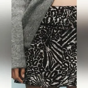 Anthropologie X Maeve Low Rise Belted Animal Print Micro Mini Skirt