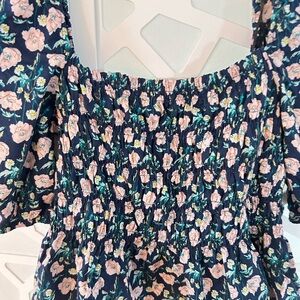 Umgee Pink and Blue Floral Smocked Top with Puff Sleeves