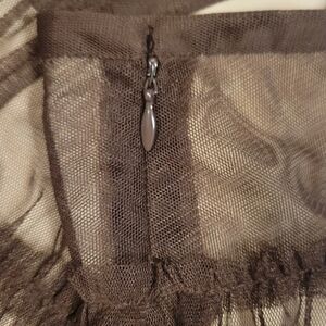 WD.NY Brown Tiered Y2K Skirt with Nude Lining and Side Zip, Women Size 12