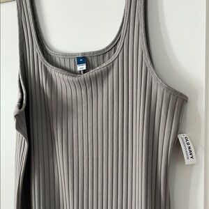 This casual sheath dress from Old Navy features a ribbed texture in a sleek gray hue. With its sleeveless design and scoop neckline, it offers a comfortable and stylish fit. The stretchy knit fabric ensures both comfort and shape retention, making it perfect for everyday wear.