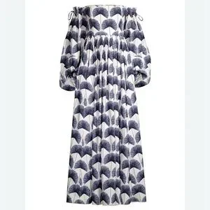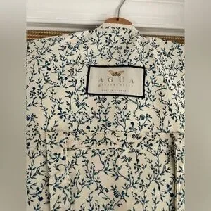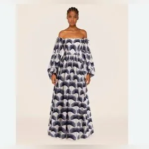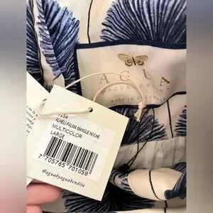 AGUA BY AGUA BENDITA Alheli Mangle Noche Dress Blue White Dress NWT LARGE L