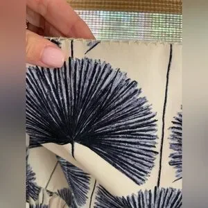 Ivory cream white background with navy blue palm print.