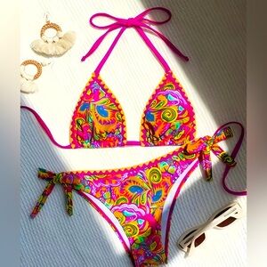Dive into summer with this vibrant multicolor paisley bikini. Perfect for beach days, this swimwear features a stunning mix of colors that will make you stand out. Enjoy the perfect blend of style and comfort. Turn some heads this summer with this sexy bikini! Comes in original packaging with protective strip in bottom. No tags came with this boutique order.