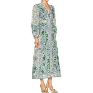 NEW Zimmermann Ottie Plunge Maxi Dress in Green Paisley