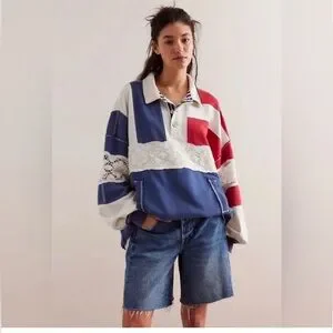A unique addition collection to your of layering essentials, this We the Free pullover features an oversized fit and drop-shoulder sleeves, with cool contrast lace detailing and a classic collared neckline.