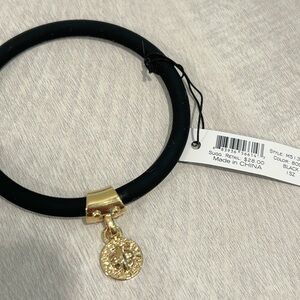 This exquisite Marc Jacobs bracelet showcases a sleek silicone black band paired with a stunning gold charm, offering a perfect blend of elegance and style