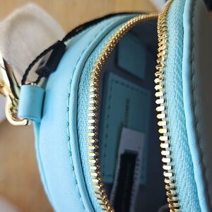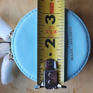 Elegant round coin pouch by Marc Jacobs. Light blue with sleek design. with key attachment