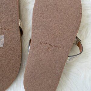 EUC TORY BURCH MILLER CLOUD SANDAL METALLIC GOLD CORK FOOTBED SZ 9.5