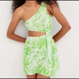 For Love And Lemons Green and White One-Shoulder Sundress Mini Dress sz M