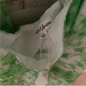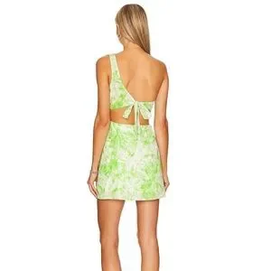 This chic sundress by For Love And Lemons features a vibrant green and white floral print, perfect for a night out or resort wear. The sleeveless design and one-shoulder neckline add a touch of elegance, while the lightweight fabric ensures comfort in warm weather. sz M