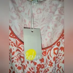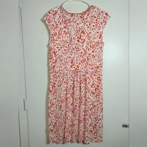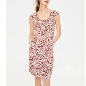 Boden (Size 10R) Red & White Floral Print Jersey Knit Dress w Pockets (NEW-NWT)