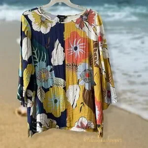 Ali Miles Artsy BOHO Cool and Comfortable Blocked Floral Tunic Top 2X