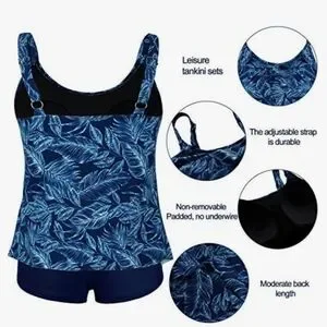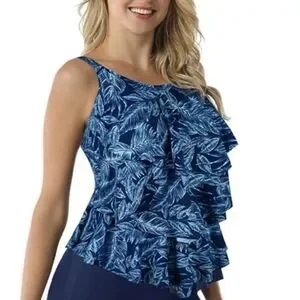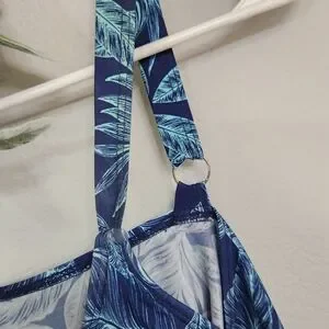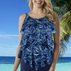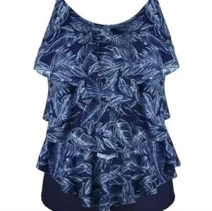 Cadocado Tankini Swimsuit Blue Palm Tree Leaves 3 Tier Ruffle Top Sz 20 XXL Exc