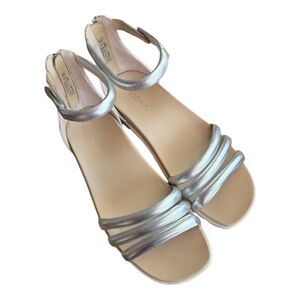 Dazzle in metallic shine and fashioned delight wearing the VIONIC® Laurel Ankle Straps Flat Sandals. The footwear features leather upper construction with zippered closure on the backstrap, adjustable hook-and-loop ankle strap, hidden goring, and open square toe silhouette.