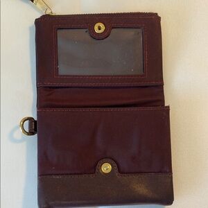 TUMI Dark Red Leather Wallet with Gold Accents