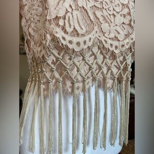 Chelsea & Violet Light Blush Pink Cropped Lace Fringe Blouse Semi-Cropped Top