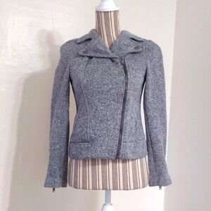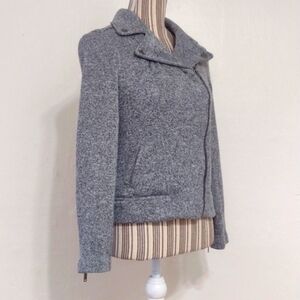 Stylish gray jacket. Asymmetrical zipper. Classic design. Perfect for layering.