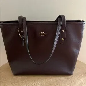 Coach Deep Burgundy Red Leather Tote Bag with Structured Design